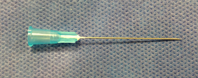 | 10. Pull needle out and follow standard post-procedure protocol with cleaning off the skin and placing a bandage. |
