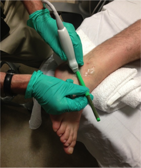 | 3. Place probe in short axis over the peroneal tendon sheath. |