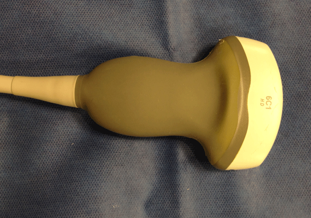 | 2. Position patient laying supine on table. | Picture of probe on patient supine |
